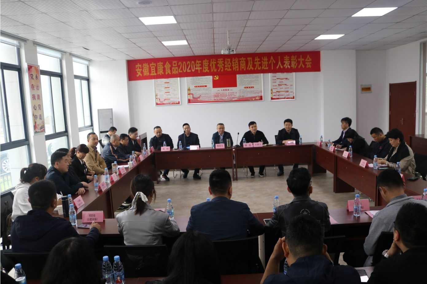 2021年4月24日,宜康食品公司在会议室召开2020年度优秀经销商和先进个人表彰大会。公司董事长熊星火讲话,市场部经理黄元林作工作报告,熊小厨门店运营总监孙大应宣读表彰决定,总经理陈亮主持会议。