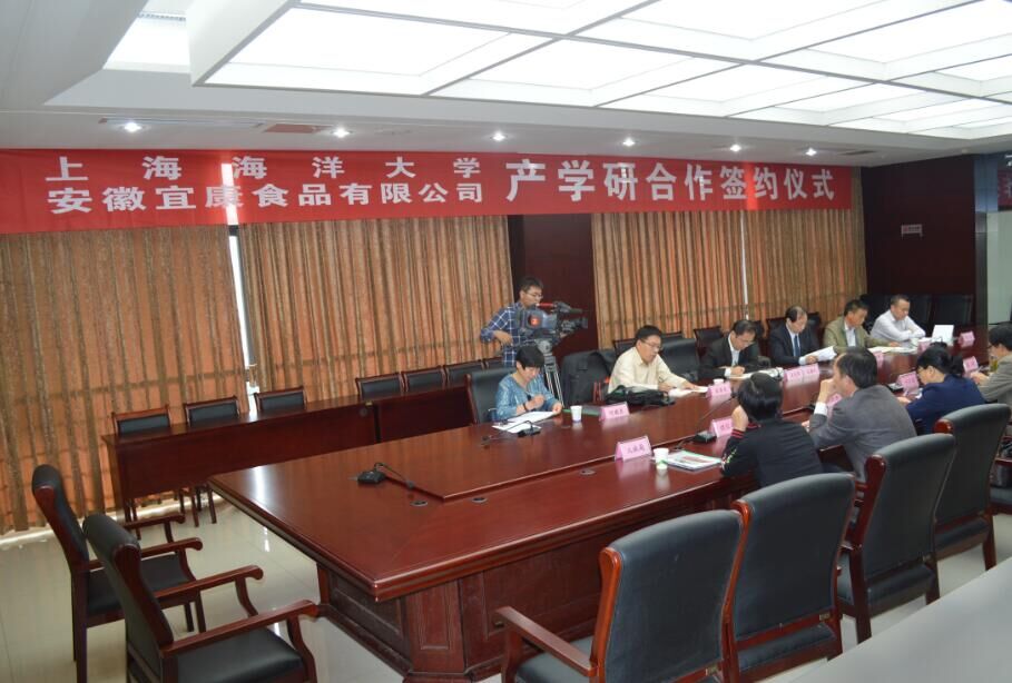 10月19号,安徽宜康食品有限公司与上海海洋大学举行产学研合作签约仪式。县委常委、组织部长王光军,县经济开发区管委会主任李志刚、宜康食品公司董事长熊星火、上海海洋大学技术转移有限公司总经理吴炯华、上海海洋大学技术冷冻冷藏专家万金庆以及县委组织部、经信委、农委、人社局、科技局、招商局等单位负责人出席签约仪式。