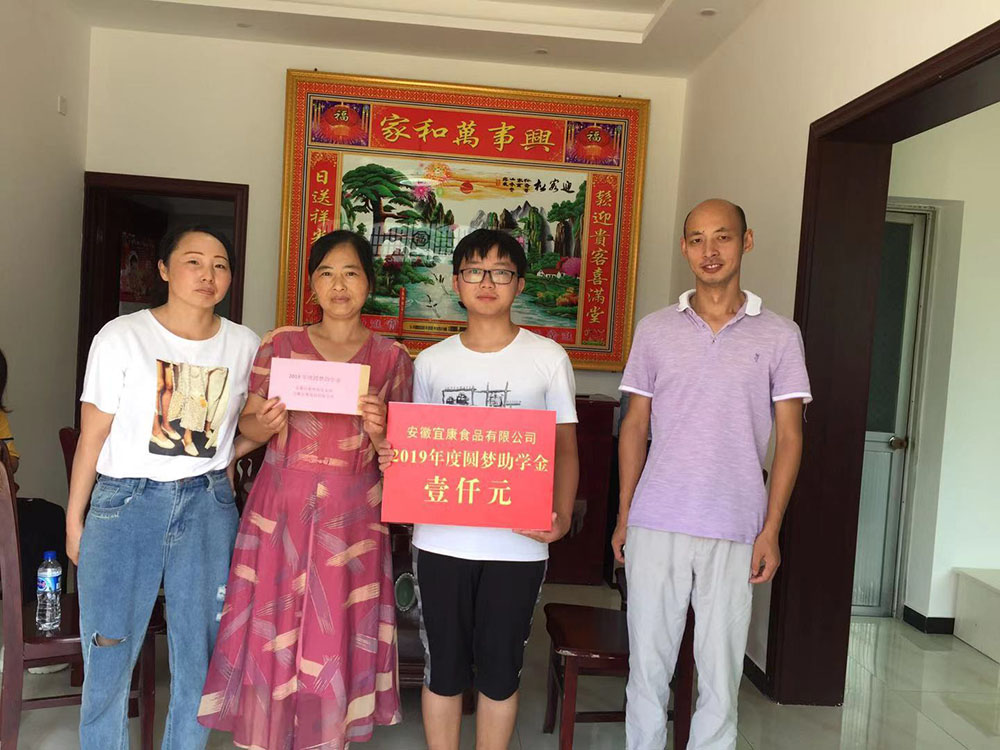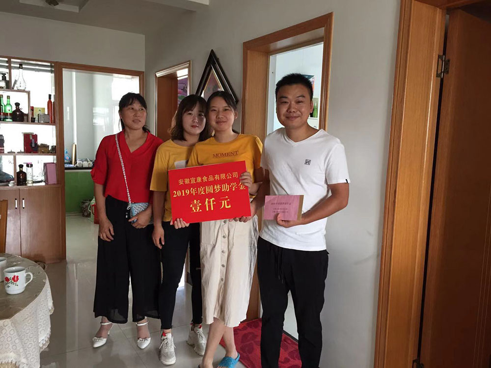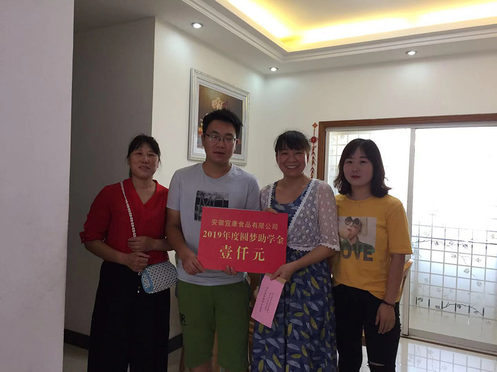 莘莘学子梦,浓浓助学情。安徽宜康食品有限公司自成立以来始终坚持以人为本、尊重教育、关爱员工的企业精神,开展一系列助学、助困活动,让员工的子女能够顺利完成学业,帮助他们实现自己的梦想。