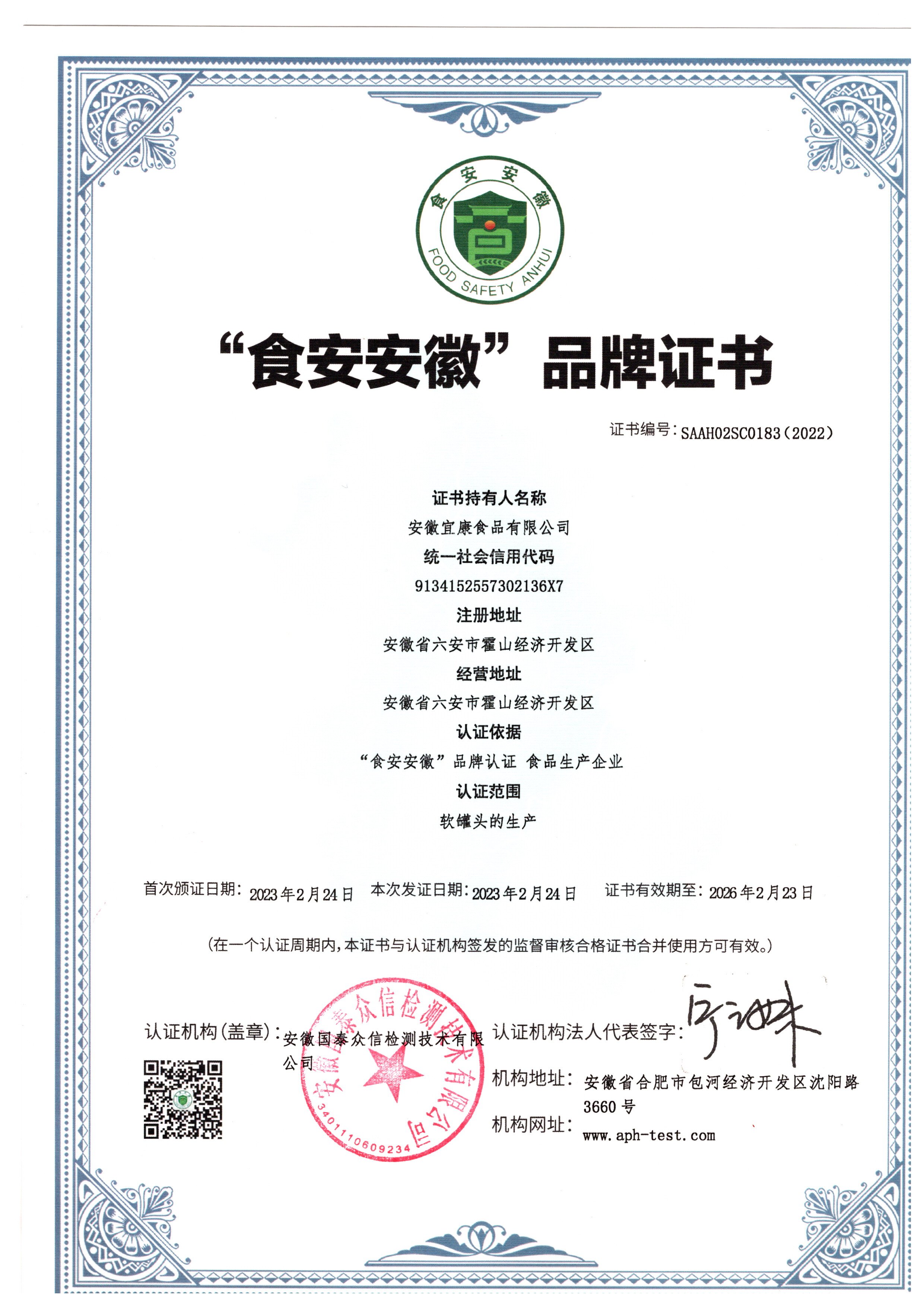 近日,安徽省2022年度“食安安徽”品牌认证结果揭晓,宜康食品荣获“食安安徽”品牌认证。“食安安徽”品牌认证是安徽省食品领域最高的品牌认证之一,是企业质量管理水平的“体检合格证”、食品质量安全的“信用等级证”。宜康食品作为获评“食安安徽”品牌的企业,充分证明公司在产品质量管控方面获得认可。