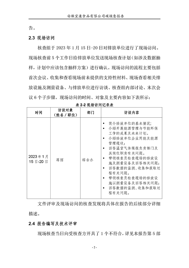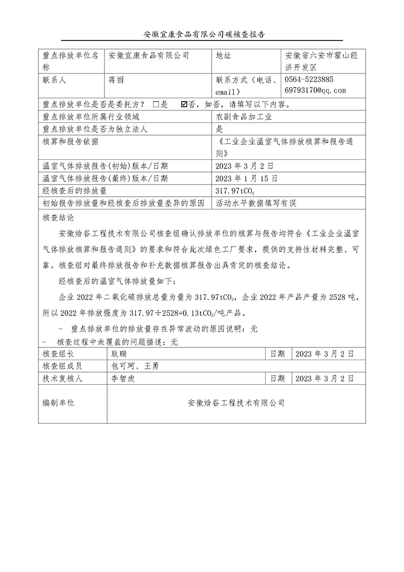 宜康食品--2023年碳核查报告
