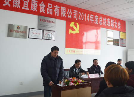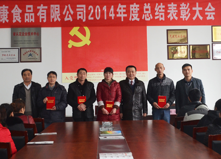 2015年3月6日下午,宜康食品2014年度总结表彰大会隆重召开。公司董事长熊星火、董事长助理陈亮、副总经理刘立传及全体员工参加了会议,副总经理刘立传主持会议。