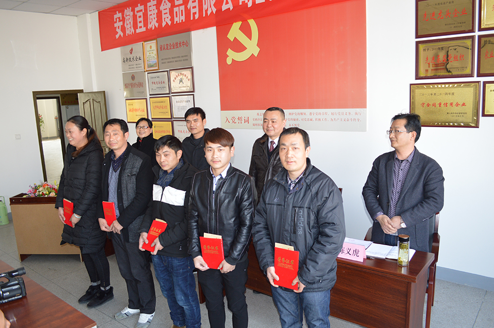 回首过去,熊董事长豪情满怀,他指出,过去一年,在公司全体员工的共同努力下,通过聚焦生产,聚焦市场,聚焦创新,聚焦品质,内抓管理外拓市场,保持了公司各项工作稳步发展的良好势头,取得了较好的业绩,全年实现销售收入3200万元,同比增长10.5%,完成年度目标任务的104%;实现税收126万元,同比增长173%,完成年度目标任务的105%,圆满的实现了年初制定的双目标任务。展望未来,熊董事长雄心勃勃,他希望大家发挥主人翁意识,以企为家,为公司做大做强做出贡献。他强调要以科技创新为指导,以产品开发为抓手,以百合等药食两用鲜榨饮品原料软包装罐头和中餐半成品生产为主导,以粗粮、干货等大别山特色农产品分装为辅助,以实现企业经营与管理从单一的目标式管理开始向系统化、科学化管理转变为中心任务,按照“实施品牌化经营、严控产品质量、健全营销网络、延伸产业链条、完善售后服务体系”的要求,努力把宜康食品打造成为融研发、生产、销售于一体,产业链条完整,在全国具有影响力的绿色农产品生产加工基地。 2017年争取实现工业总产值1亿元,销售收入9000万元,利税1800万元。